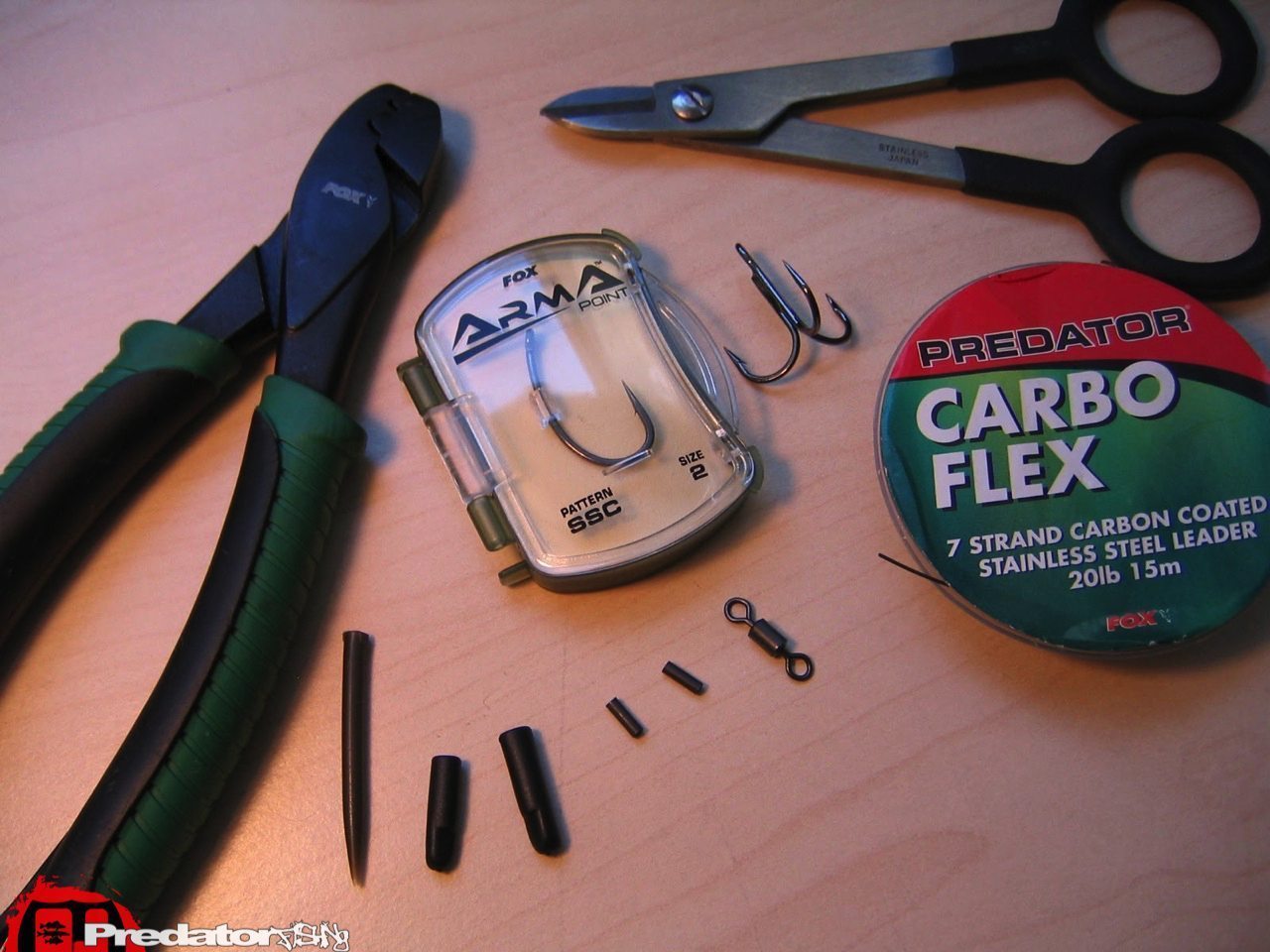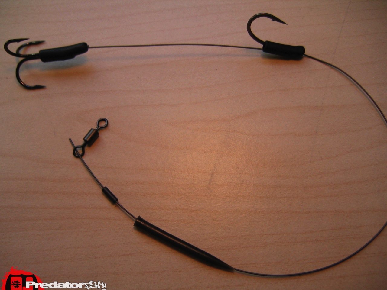 Heute will ich euch mal zeigen wie man ein Deadbait Uni Trace selber baut. Wie der Name schon sagt ist das Vorfach für einen toten Köderfisch oder Teil eines Köderfischs gedacht. Es besteht aus einem Drilling und einem Einfachhaken. Der Einfachhaken soll durch die Schwanzwurzel gehakt werden und der Drilling steckt in der Seitenflanke des Köderfisches.