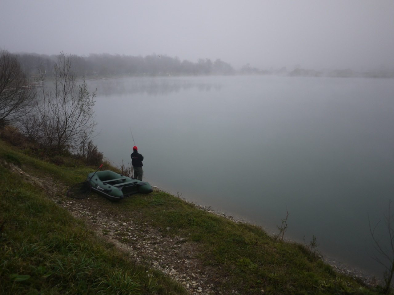 Wenn das App am Smartphone eine grenzenlose Beissaktivität angibt und man die Einladung bekommt an einer vielversprechend- alten Schottergrube den Raubfischen nachzustellen, ist eine Anreise von 2 Stunden und eine Temperatur von unter Null nebensächlich! Mal dezent um halb 5 am Morgen (eigentlich mitten in der Nacht) ’nen Kaffe runtergewürgt und inmitten der nächtlichen „Party- Heimkehrer“ das Tackle ins Auto verladen peitschte ich die von Frost überzogene Karre Richtung Süden… ja, ja, man denkt immer im Süden sei es wärmer, denkste…