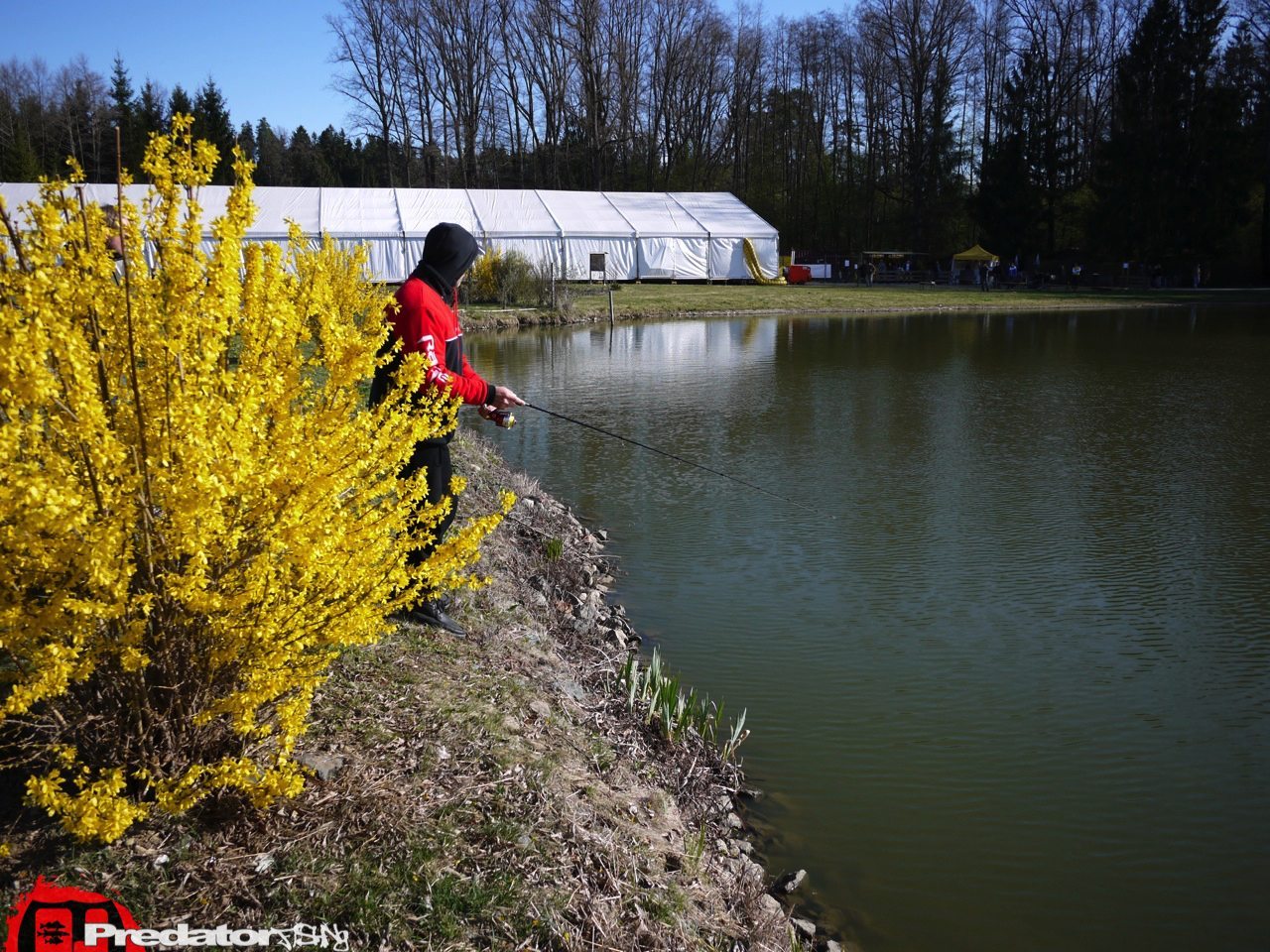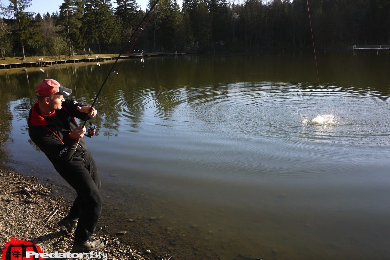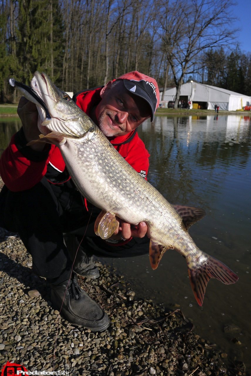 Am Vormittag verdrückten wir uns für nur ca. 20 Minuten ans Predatorlake nebenan und das genügte schon um 3 schöne Hechte für eine kurzen Fotosession zu überreden. Er hatte somit eindeutig Blut geleckt… So gegen späteren Nachmittag, als der Besucheransturm ein wenig nachgelassen hat, hat Dietmar dann klamm heimlich eine Terminator V-Jig Power und einen Jimmy in der Farbe Firetiger gepackt und machte sich ratz fatz vom Acker… klarerweise folgte ihm eine fette Menschentraube in Richtung Predatorlake um sich vielleicht doch ein paar neue Kniffe und Tricks vom Weltmeister in Action zu erhaschen. Es gingen auch hier wieder einige sehr schöne und wirklich fette Hechte welche sich in der Nachmittagssonne am Ufer aufwärmten…