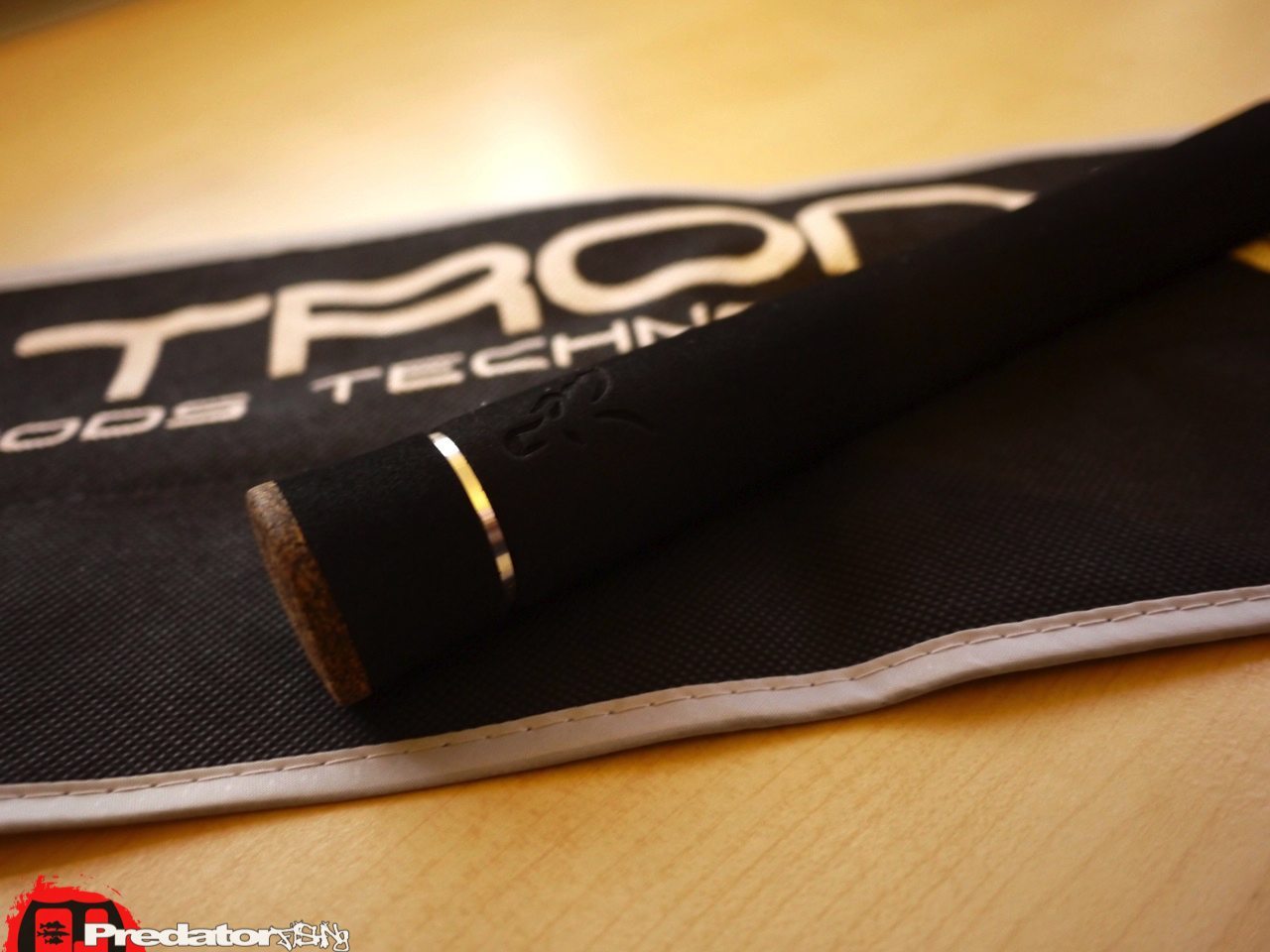 Klar wurde sie sofort geordert und nun ist sie eingetrudelt… Verpackt ist das gute Ding in einem Stofffutteral mit einer Länge von 180cm… das kommt daher, dass die Rute quasi einteilig- und nur das Griffstück abnehmbar ist. Der schlanke Premium- EVA- Griff liegt schon beim ersten Kontakt gleich sehr angenehm in der Hand (wer mich kennt weiss, dass ich bald mal etwas an den Griffen auszusetzen habe…) und punktet in einer wirklich makelfreien Verarbeitung. Keinerlei Klebespuren an den Übergängen, geschmeidiges Ineinanderlaufen der einzelnen Materialien und sehr „griffig“ in der Hand… das war mein erster Eindruck beim Auspacken… Gott sei dank hat Dietmar auch hier auf eine metallene Abschlusskappe -welche eigentlich nur zerkratzt werden kann- verzichtet, dies lässt auch noch nach Jahren in Verwendung ein makelloses Aussehen des Rutenabschlusses zu.