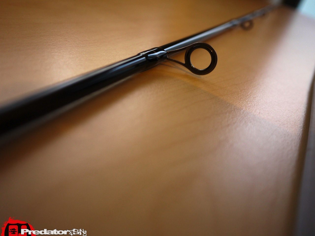 Die Beschriftung des Rutentyps auf weißem Hintergrund ist ja seit ein paar Jahren schon von vielen Herstellern entdeckt worden und wirkt „sportlich“ und frisch… die restlichen Verzierungen am High- Module- Carbon Blank sind in dezentem Silber gehalten und halten sich durchaus in Grenzen, was mir persönlich immer sehr gut gefällt. Der komplette Blank ist mit Klarlack überzogen, die einzelnen Fox SLICS- Ringe sind gut und vollständig verklebt und in die Lackschicht eingelassen ohne dass gleich bei der ersten Berührung der Lack springt. Wie ihr sicher schon alle wisst, bieten diese Ringe eine optimale Abriebfestigkeit bei Verwendung von geflochtenen Schnüren und leiten auch die Hitze gut ab. Die Steckverbindung zwischen Griff und Blank flutscht anfangs schon sehr streng, dies wird sich aber hoffentlich nach ein paar Einsätzen bessern. Ich bin schon sehr gespannt wie sich das Teil am Wasser bewährt und wie feinfühlig die ULTRON- Spinning dann wirklich ist. Auf alle Fälle werdet ihr es hier erfahren, also beleibt dran und schaut mal wieder vorbei…