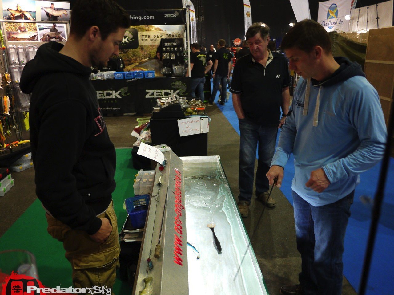 Alle Jahre wieder trifft sich alles was mit Haken und Schnur umgehen kann an einem Gewässer in Österreich, mittlerweile dem Schwarzl See, bei der Austrian Fishing Show. Letztes Jahr hatten wir am zweiten Messetag ja Schnee, was uns heuer glücklicherweise erspart geblieben ist. Das Wetter war trotz angekündigtem Regen trocken und dementsprechend rege war das Interesse am Wasser, wo man Rene und mich mit einem Teststand von FOX Rage finden konnte. Der erste Messetag auf der Austrian Fishing Show war nach meinem Empfinden um einiges schwächer besucht als die Jahre davor, keine Ahnung warum, wobei dann am Sonntag wirklich einiges los am Wasser war. Auf der Messe gab es neben den altbekannten Ausstellern wie Falle aus Kärnten, der wieder fast ein drittel der diesmal um einiges größeren Halle eingenommen hat, auch frisches Blut mit Shops wie Shadland.de oder A.S.O, welche wirklich ein megageniales Sortiment in die Steiermark geschleppt hatten. Leider sind wir hier bei uns noch immer seeeeeehr karpfenlastig. Dementsprechend mager war auch das Interesse an den neuesten Ködern und Shads aus Fernost, was bei den Händlern die wirklich weit angereist waren für ziemlichen Unmut sorgte. Ich persönlich hatte natürlich die helle Freude mal wieder die Chance geboten zu bekommen die neuesten Neuigkeiten aus Fernost durchstöbern zu können. Von FOX Rage war natürlich der neue Crank Stick II in 200mm, 240mm und 270mm das absolute Messehighight, welches auch sehr viel Interesse bei den Besuchern weckte. Mit einer fetten Range von 7-56g Ködergewicht konnte man wirklich mal den Versuch starten alle Köder und Größen durchzutesten und das Verhalten zu analysieren, was auch viele Besucher mit großer Verwunderung machten, denn die Rute hält was sie verspricht. Die neuen Pro Shads in den neuen Farben Hot Olive & Co, die Micro Fry- Palette und einige andere Neuheiten waren mit dabei und sorgten bei den Besuchern für reges Interesse. Nebenbei konnte Rene am ersten Messetag einen Barsch und einen Zander vor den Besuchern vor die Kamera zerren und am zweiten Messetag konnten wir beide noch mal jeweils einen Zander nachlegen.