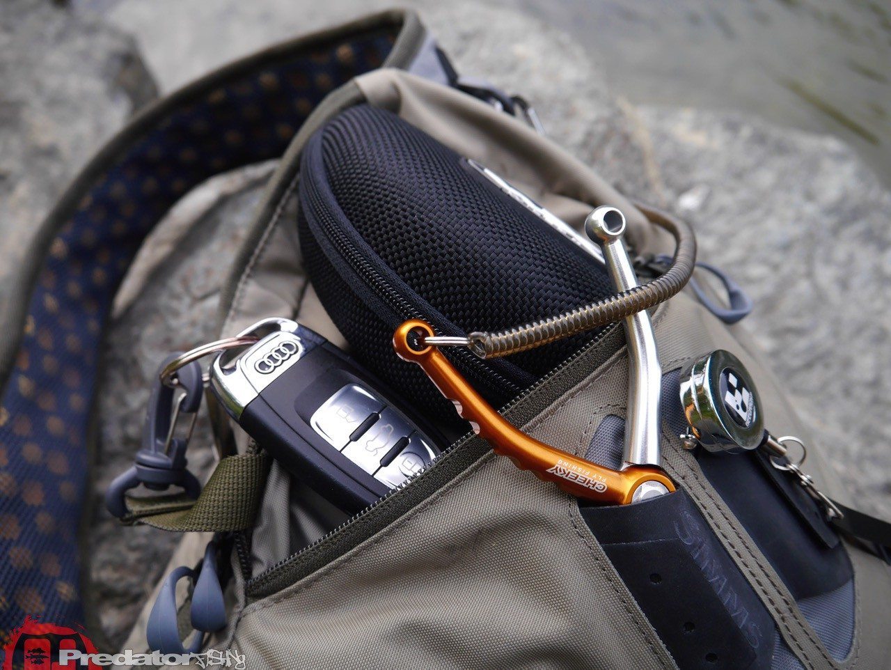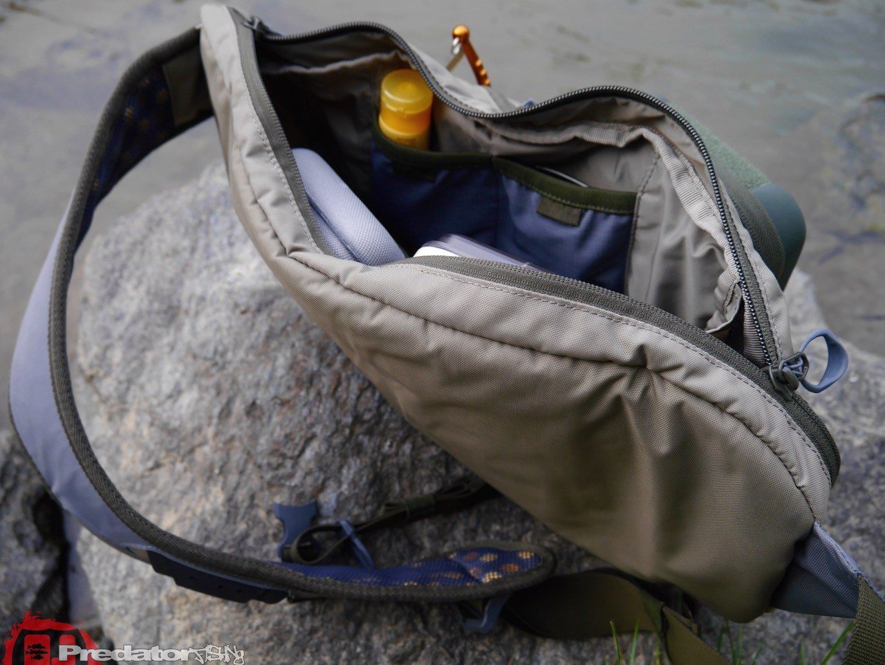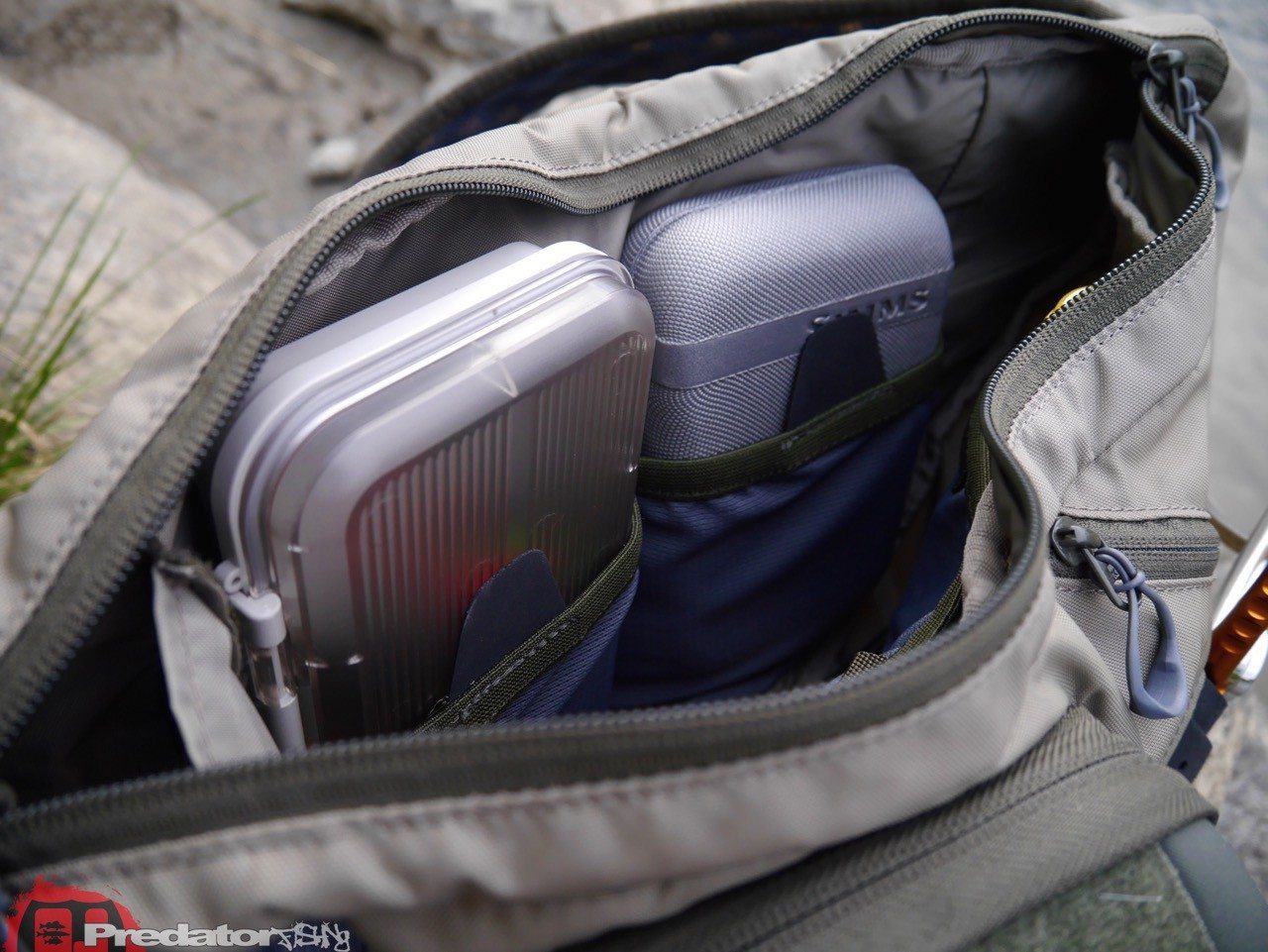 Die genialste Idee an der Headwaters Sling Pack sind aber mit Abstand die speziell geformten „Gummiringe“ an den Reißverschlüssen, durch die die Finger quasi von selbst in die richtige Position zum Öffnen des Reisverschlusses gebracht werden… also auch mit nassen oder kalten Händen ist es somit überhaupt kein Problem die Reisverschlüsse der Tasche zu öffnen oder zu schließen… das Anglerleben kann durch Kleinigkeiten so einfach sein! 🙂