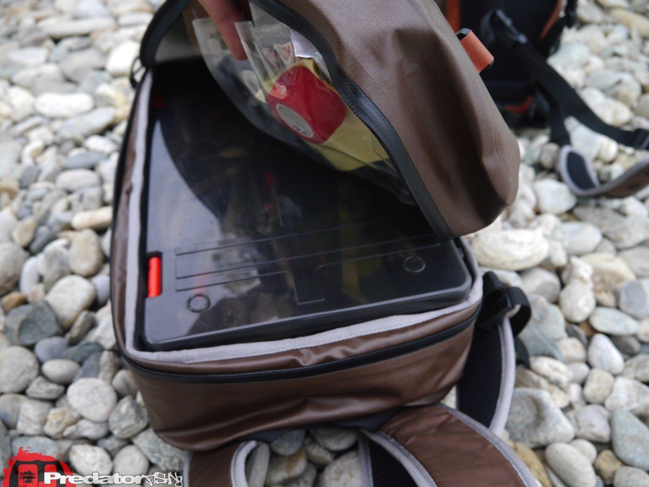 Das Westin W6 Wading Backpack & Chestpack kann entweder zusammen oder einzeln genutzt werden. Die Fronttasche hat einen ebenfalls gepolsterten Gurt, der als Nackengurt beim System benutzt werden kann, oder als Bauchgurt beim separaten Gebrauch Verwendung findet. Abgesehen von der inneren Polsterung ist auch die kleine Tasche mit den gleichen Eigenschaften ausgestattet wie der Rucksack. Innen finden sich kleine Facheinteilungen, in denen das Zubehör und Werkzeug praktisch aufgeteilt werden kann. Ich nutze dieses Chestpack zum Beispiel für mein POV CASE in small, damit meine GoPro inkl. Zubehör gegen Regen und Staub geschützt ist.