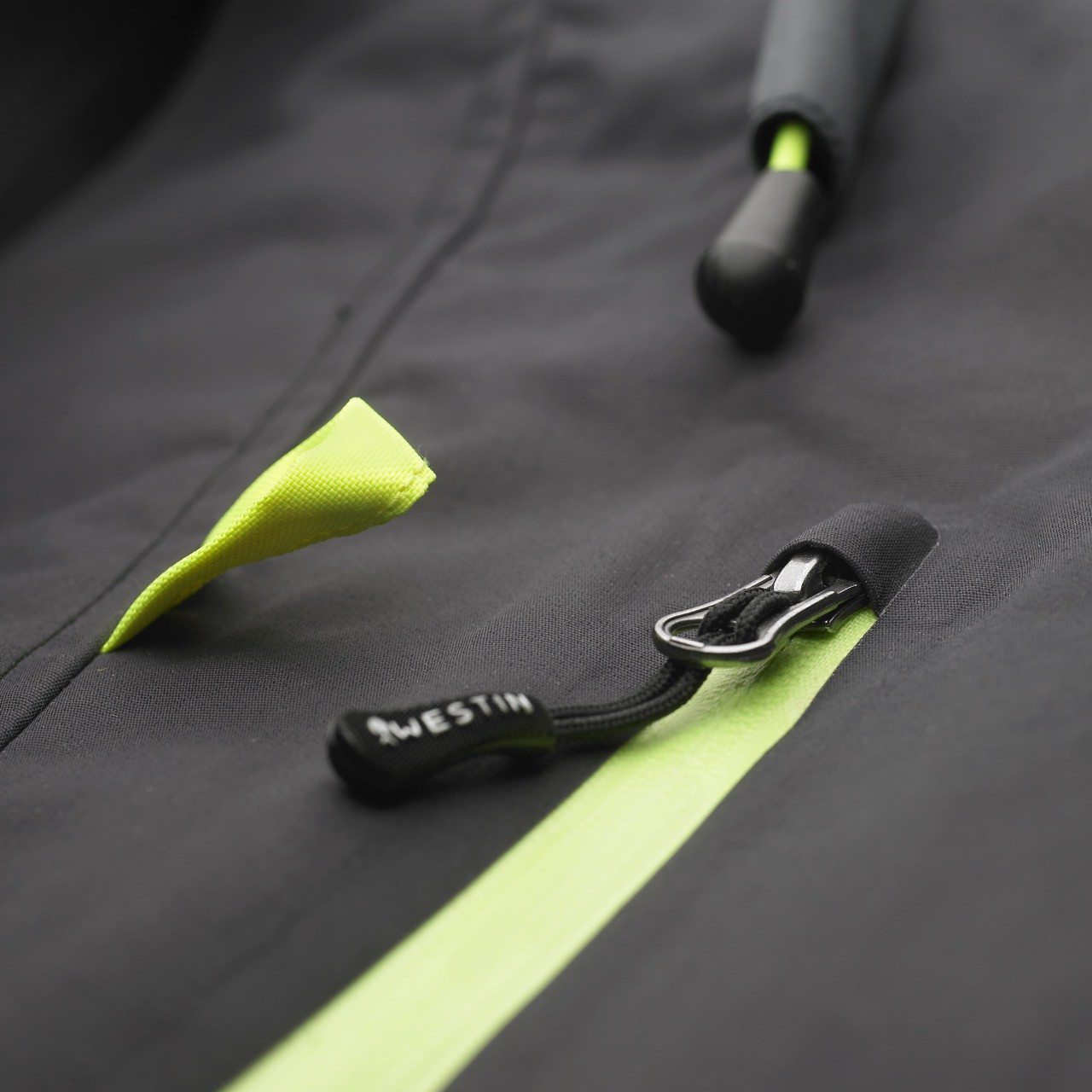 Westin W4 Winter SuitMit einer 5000er Wassersäule und einer Atmungsaktivität von 5000g/m²/24Std kann man auch mal bei Schneefall oder Regen seine Angeltour durchziehen, und ist wahrscheinlich der einzige am Wasser der noch konzentriert Raubfische fängt. Beim Streetfishing unterstützen vor allem in der Winterzeit die EN471 Reflektoren im Nackenbereich den Angler bei der Erkennbarkeit für Autofahrer und lässt in der dämmrigen Winterzeit schon von weitem, dezent aber dennoch gut sichtbar, markanten Punkten leuchten.