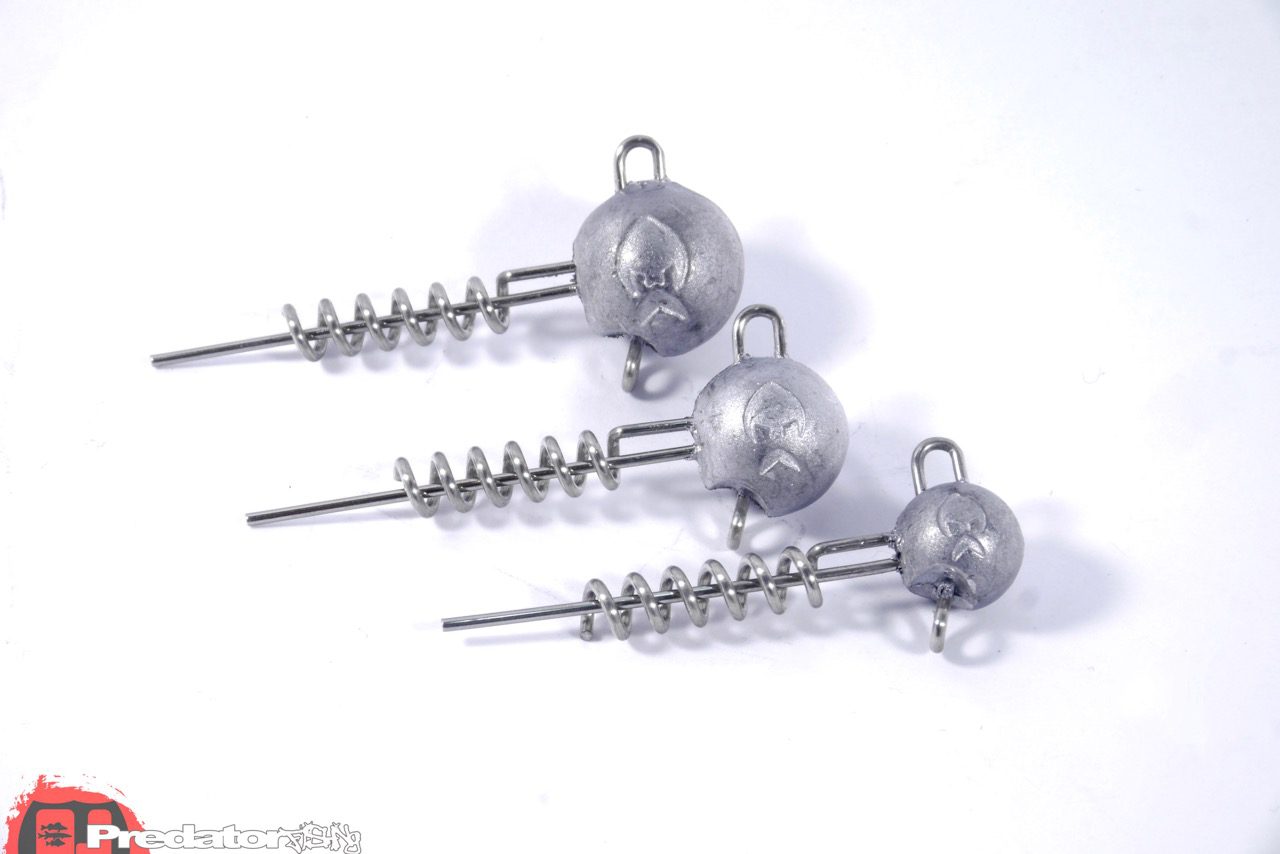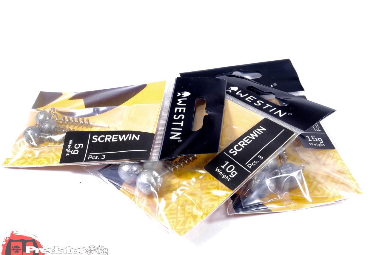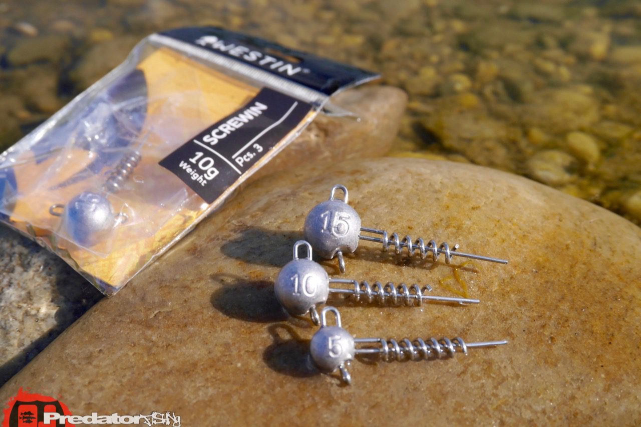 Nun stieg auch mein Tackle- Sponsor Westinfishing mit den neuen Westin- SCREWIN in diese Jighead- Sparte ein. Er brachte im Gegensatz zu den erwähnten Jigheads von Mr. Finesse ein paar schwergewichtigere Exemplare auf den Angelmarkt. Die Bleiköpfe in Kugelkopf- Form wurden dabei mit einem kräftigen Drahtwendel mit Zentrierdorn gefertigt. Sie lassen sich durch diese präzise Fertigung sehr genau in den Gummifisch schrauben. Die Gewichtsangabe und das Westin- Logo ist bei den Westin- SCREWIN schon direkt eingegossen. Die Gussoberfläche ist unbehandelt und unlackiert.