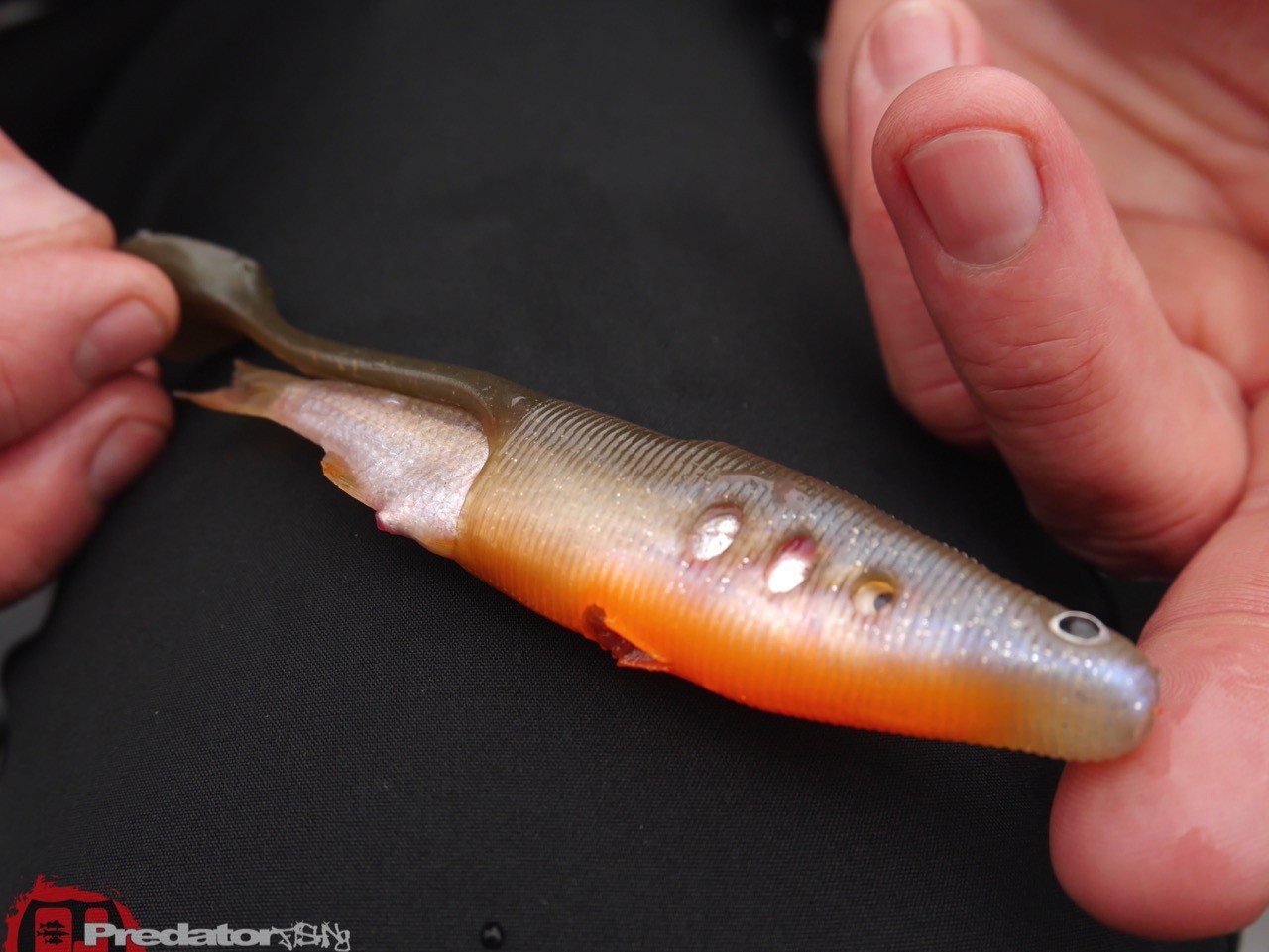 Ich hab den Westin Hollow Teez Softbait nun schon seit über einem Jahr im Test und kann euch nur sagen, diese Montage hält Bombenfest und lässt locker an die 100 Würfe zu, ohne den Köderfisch jemals verloren zu haben… der Tail des Softbaits liegt hierbei über dem Köderfisch und somit liefert dieser Köder zum einen lecker Geschmack für den Raubfisch und zusätzlich lockt er durch einen leicht flankenden Lauf der sich über die Rückenpartie bis hin zum Jigkopf überträgt.