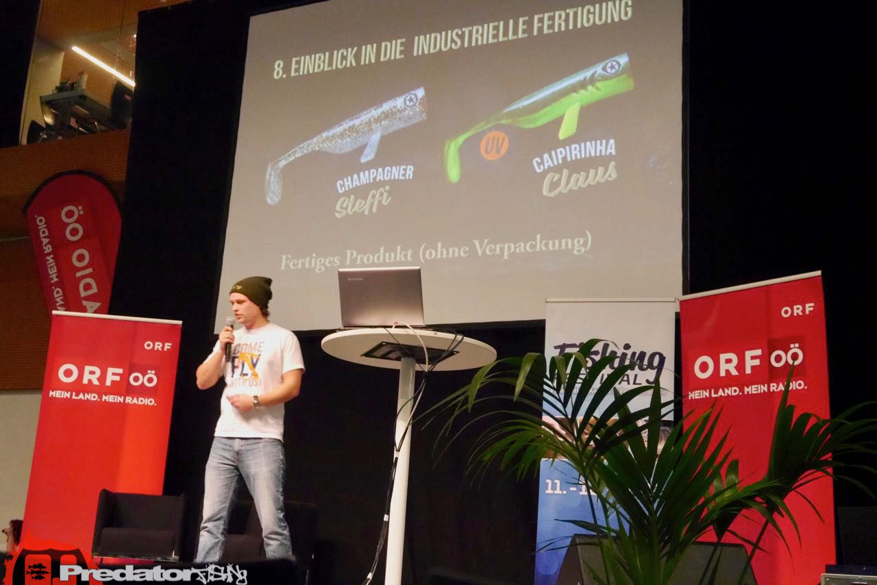 Dann traf ich endlich mal die Jungs von Hecht und Barsch und wir konnten ein paar Worte über ihren neuen Köder, den Drunk Bait wechseln. Hierzu wird es in naher Zukunft auch eine Review geben, wie der doch etwas sonderbare Köder in österreichischen Gewässern bei den Raubfischen ankommt… Von den Jungs gab es auch einiges an interessanten Vorträgen und Vorführungen am Wasserbecken. War wirklich nett und vielleicht passt es ja auch mal, dass wir gemeinsam eine Session starten…