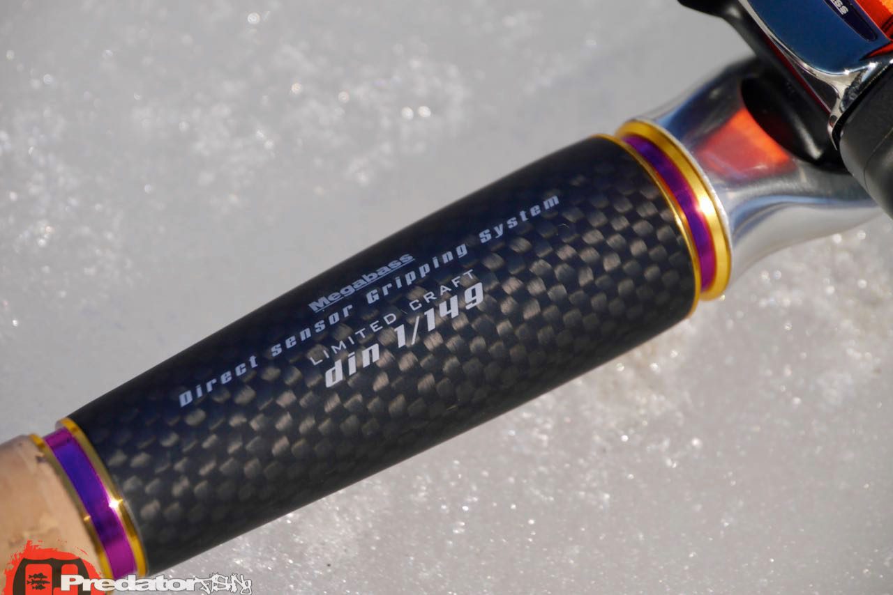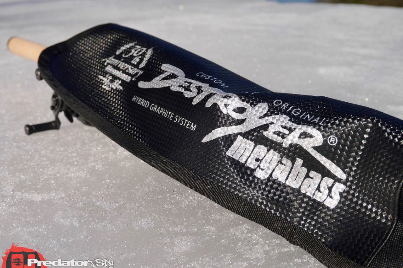 Die neue Baitcaster- Rute von Megabass, die Megabass Destroyer LEGEND WORKS LIMITED F5-66X 30th Bearing Down wurde anlässlich des 30- jährigen Jubiläums der Firma Megabass in einer streng limitierten Auflage produziert. Es ist im Gunde genommen eine Neuauflage der 2006er F5-66X Bearing Down mit ein paar extrem schicken, neuen Details zum Jubiläum. Der ursprüngliche Blank wurde neben ein paar wirklich schönen Verzierungen durch eine dreifach- Spiralwicklung versteift, somit konnte bei dieser Sonderserie eine ultrahohe Empfindlichkeit erzielt werden, durch die jede noch so kleinste Berührung am Köder direkt in den extrem stylischen“High rigid body & Super sensitive metal frame“- Rollenhalter durchschlägt. Dies sollte neben dem DSG (Megabass Direct Sensor Gripping System), einer Carbon Hülle, welche direkt an den Rollenhalter anschließt, im Anhieb die nötigen Millisekunden an Vorteil gegenüber dem Schwarzbarsch bringen, wodurch noch eine bessere Quote an verwertbaren Bissen erzielt werden soll. Neben der Unterschrift vom Megabass CEO, Yuki Ito ziert auch noch der goldene Destroyer Schriftzug den mattschwarzen Blank im hinteren Bereich. Auf der Unterseite des Rollenhalters verläuft der reine Blank freigelegt, durch den Metallrahmen und in der Ausnehmung wurde der Blank zusätzliche zum grauen Megabass oracle Dragon auch noch mit einem damüberliegenden, goldenen 30th Anniversary Logo verziert. Es ist ein besonderes Modell eben für den 30. Jahrestag!