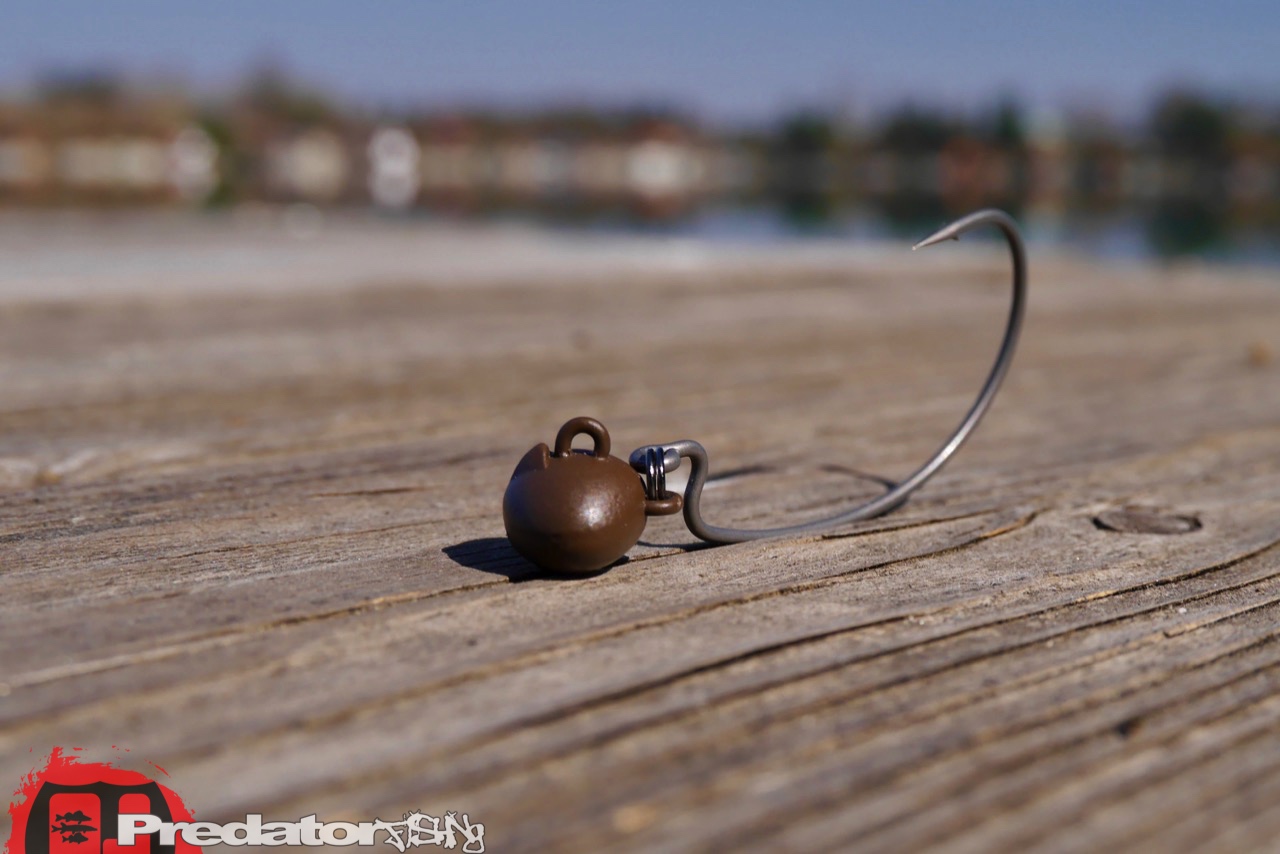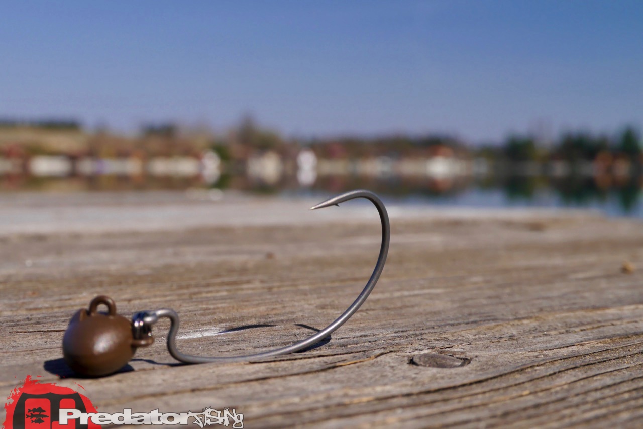 Die mattierte Beschichtung des Zappu Bow Head in braun, lässt den Jigkopf noch dazu relativ unauffällig arbeiten, was den vollen Fokus auf den eigentlichen Köder fördert. Noch dazu hält die Beschichtung extrem gut, auch wenn ich den Köder über den steinigen Gewässergrund meiner Schottergruben rattern lasse. Dahingehend hatte ich anfangs so meine Bedenken, dass er gleich mal abgekaut aussehen wird, aber nix da… die Beschichtung hält bombenfest! Das Tungsten Gewicht inklusive seiner speziellen Beschichtung ist also sehr widerstandsfähig, auch wenn man den Köder ständig über steinigen und hartem Untergrund führt. Der Haken des Zappu Bow Head besteht aus eine relativ dünnen Draht mit einer chemisch geschärften Hakenspitze.
