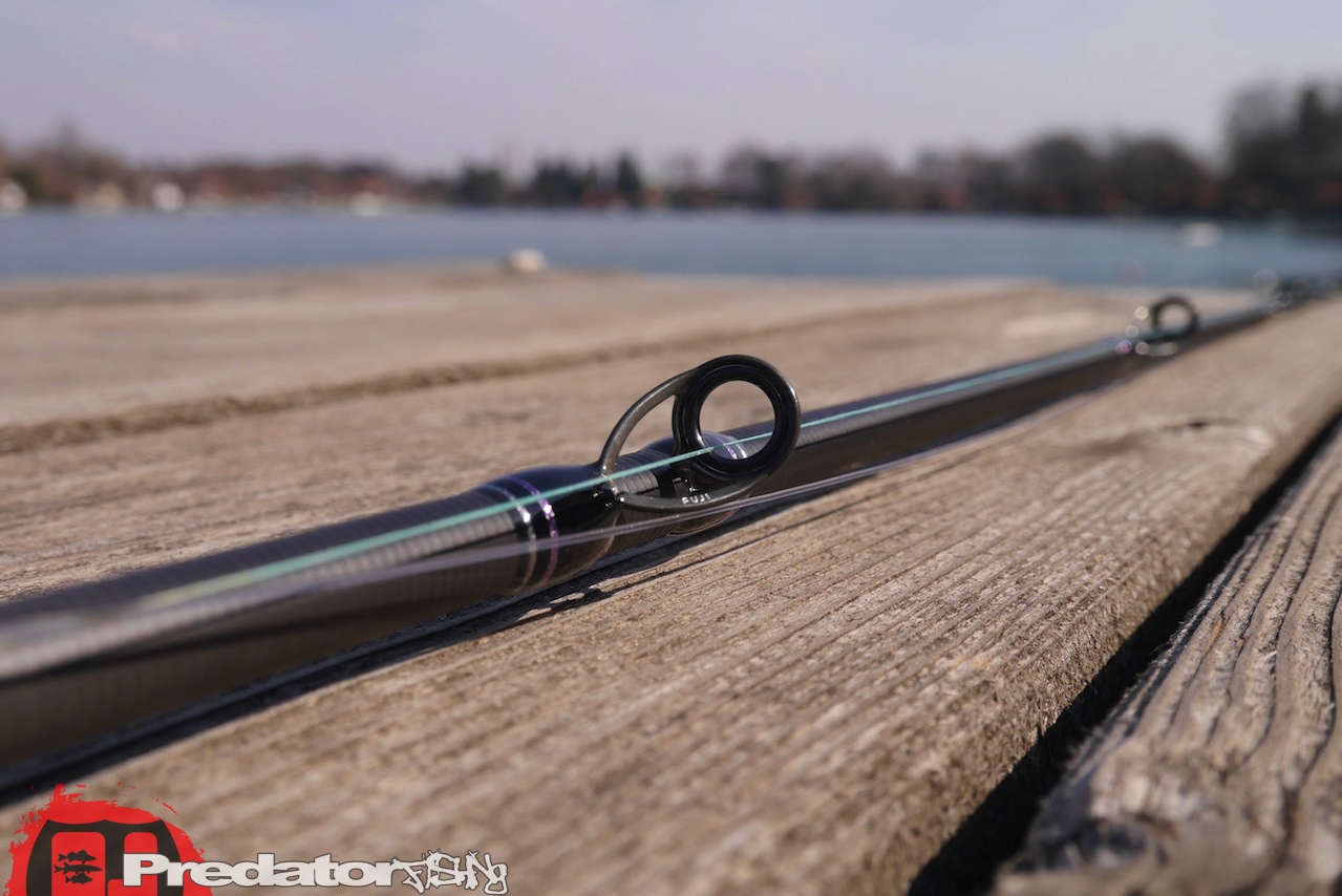 In der Tat könnte man diese Rute als den Höhepunkt des LEVANTE Graphite Systems bezeichnen. Die extrem harzarme Konstruktion nutzt das neueste System zum Verbinden der einzelnen Graphitschichten und beseitigt das spitzenlastige Gefühl, das allzu oft bei Ruten dieser Klasse auftritt. Kraftvolle Wurfeigenschaften für den Einsatz bei hohen Wurfgewichten und eine überwältigende Köderkontrolle leiten sich aus diesem Blank ab. Ein High-Performance-Griff mit 3D-Ergonomie, der für alle Fingerpositionen und Griffformen geeignet ist und die Belastung bei langen Wettkämpfen drastisch reduziert, rundet das hintere Ende der LEVANTE JP F7-72LV Casting als Gesamtpaket ab. Ein Wettkampf-Guide-Set an Ringen von Fuji, bin ich bei solchen Ruten von Megabass schon gewohnt und bringt wie immer überwältigende Wurfweiten.