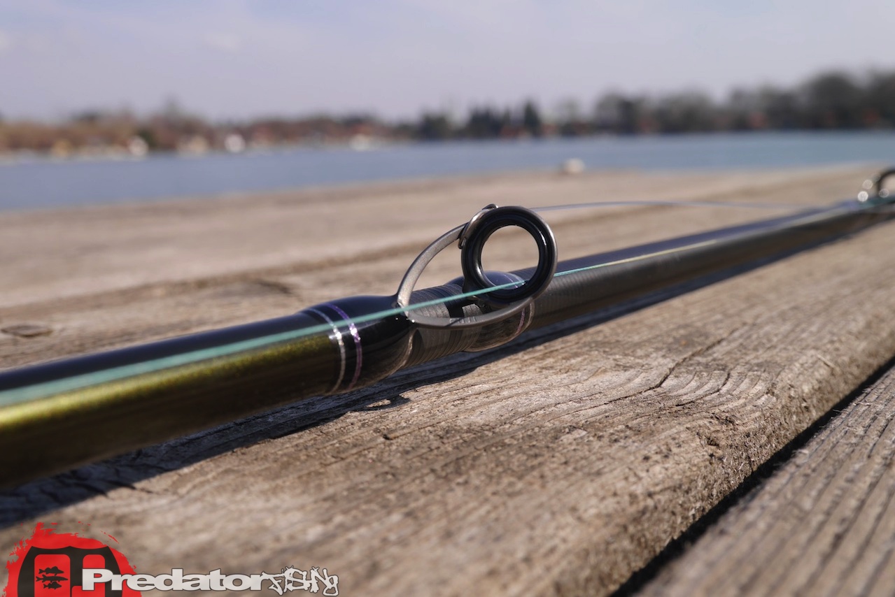 Neben den äußerlichen Designelementen, die eine Megabass-Rute klar von anderen Ruten am Markt unterscheidet, ist das Innenleben der MEGABASS LEVANTE JP F7-72LV Casting definitiv einen genaueren Blick wert. Der Fokus bei der Levante liegt definitiv am geschmeidigen Spitzenbereich, der zum einen die Genauigkeit des Rollwurfes verbessern soll und bei sanften oder zögerlichen Bissen das Fenster durch das Nachgeben der Spitze etwas weiter öffnet, als es bei anderen Ruten am Markt der Fall ist. Sehr oft passiert es vor allem beim Jerken, dass Bisse beim Anhieb in einem Fehlbiss enden, wenn die Raubfische wie Barsch oder Hecht einen zu starken Widerstand einer zu steifen Rutenspitze spüren. Die weiche Spitzenaktion öffnet somit das Bissfenster für eine verbesserte Quote beim Setzen des Hakens. Das starke Rückgrad der MEGABASS LEVANTE JP F7-72LV Casting sorgt dann aber im Drill für die nötige Kraft, um den Raubfisch auch durch unwegsame Gewässer sicher in den Kescher zu befördern. Der starke Mittelteil der MEGABASS LEVANTE JP F7-72LV Casting sorgt für ausreichend Kraft, um den Haken dann doch trotz weicherer Spitze sicher im Fischmaul zu versenken.